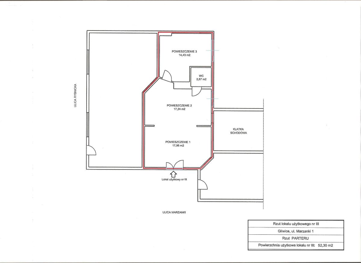 Lokal użytkowy 52,30 m2 - Gliwice Centrum na rogu Rybnickiej i Marzanki