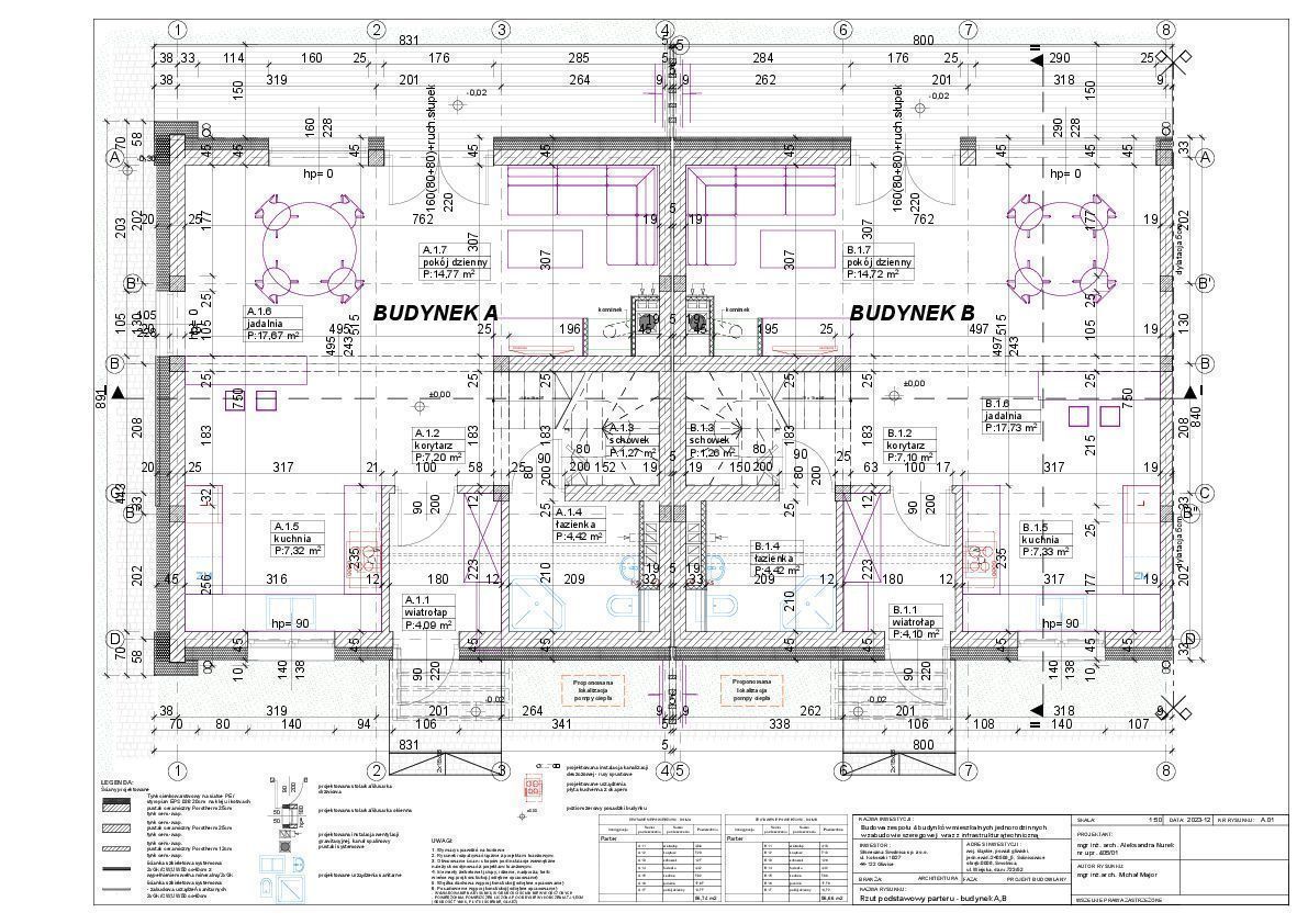 Oferta dotyczy domu w zabudowie szeregowej - segment zewnętrzny "A" o powierzchni całkowitej po podłodze 112m2 (użytkowa 99m2) w stanie surowym zamkniętym z gotową elewacją i przyłączami wraz z przynależną działką o powierzchni 309m2